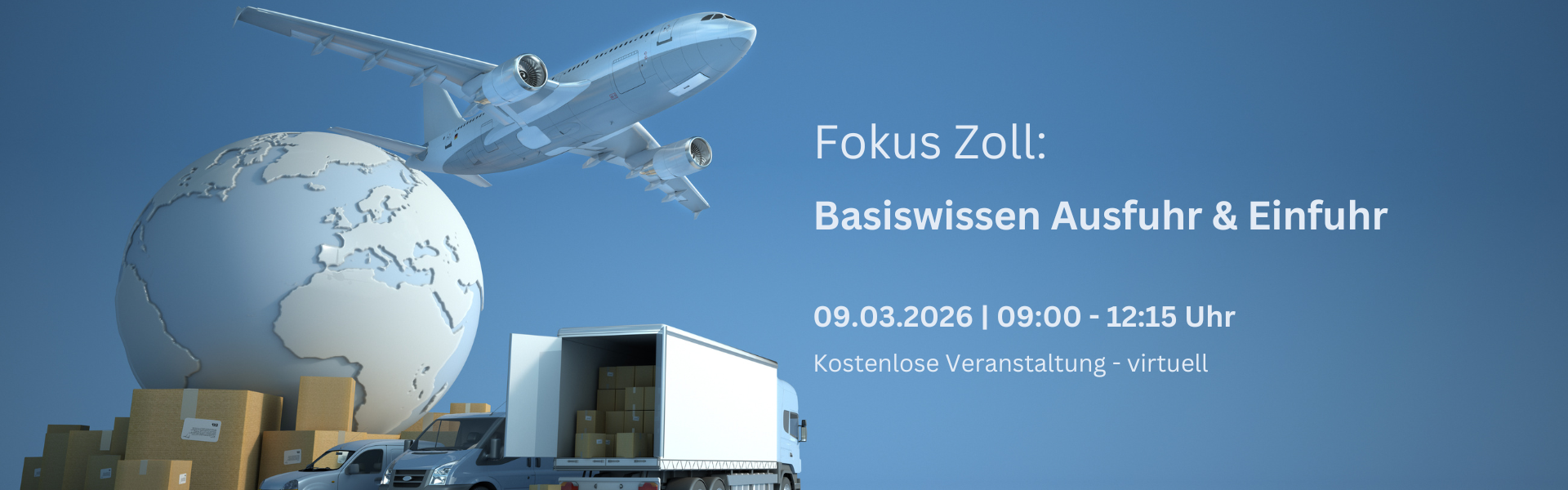 Schritt-für-Schritt durch die Ausfuhr und Einfuhr, mit unserem Webinar "Fokus Zoll: Basiswissen Ausfuhr & Einfuhr".