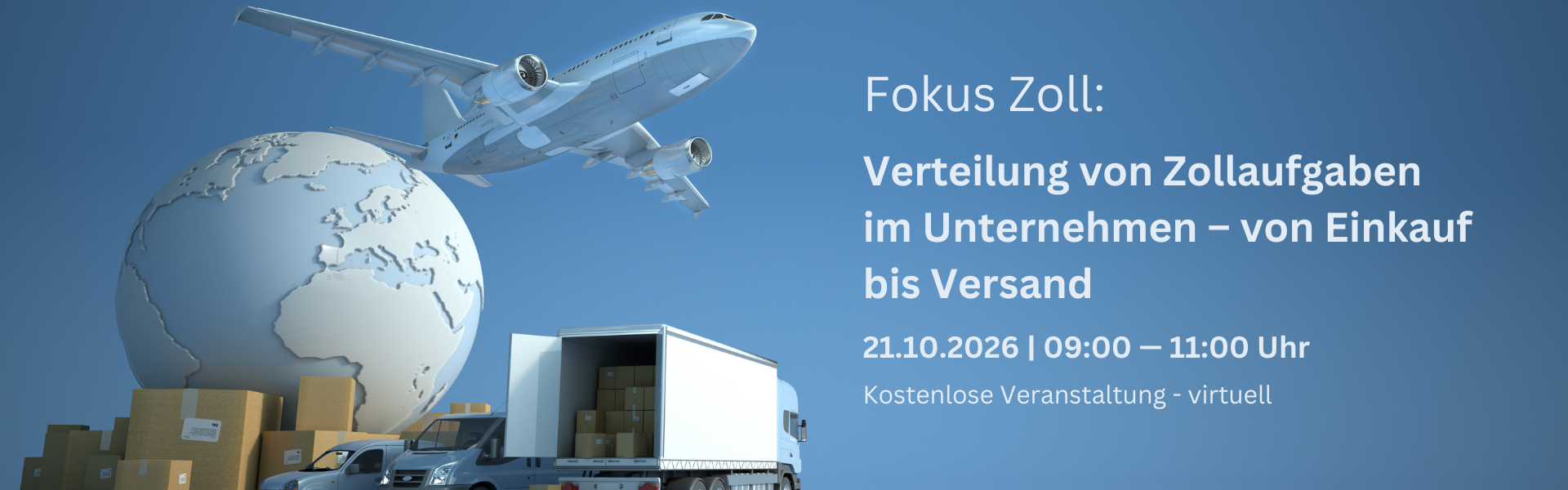 Dieses Webinar bietet Ihnen einen umfassenden Überblick über die Verteilung von Zollaufgaben innerhalb eines Unternehmens. Wir zeigen Ihnen, wie Sie Ihre Zollprozesse von A wie Außenwirtschaftsrecht bis Z wie Zollabwicklung optimal organisieren und an die spezifischen Bedürfnisse Ihres Unternehmens anpassen können. Jedes Unternehmen arbeitet individuell, und daher ist es wichtig, eigene Lösungen zu entwickeln und zu implementieren, die den eigenen Anforderungen gerecht werden. Wichtig ist auch stets, dass die Zollprozesse nicht nur auf dem Papier stattfinden, sondern aktiv gelebt und umgesetzt werden - von ALLEN Mitarbeitern, vom Sachbearbeiter bis zum Geschäftsführer.