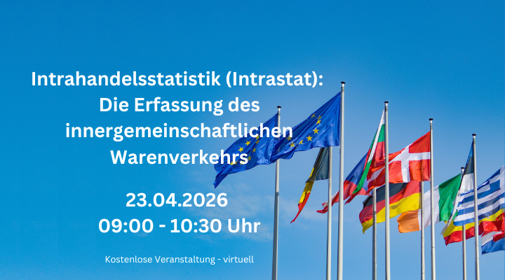 Die Intrahandelsstatistik (Intrastat) erfasst Warentransaktionen innerhalb des EU-Binnenmarkts und ist eine in allen Mitgliedsstaaten vorgeschriebene Meldepflicht. Deutsche Unternehmen müssen eine Intrastat-Meldung beim Statistischen Bundesamt abgeben, wenn sie mit ihren Ver- oder Einkäufen von Gemeinschaftsware innerhalb der EU einen bestimmten Umsatz erreichen. Das Webinar vermittelt die nötigen Grundlagen für eine korrekte Abgabe der Intrastat-Meldung und geht auf relevante Besonderheiten ein.