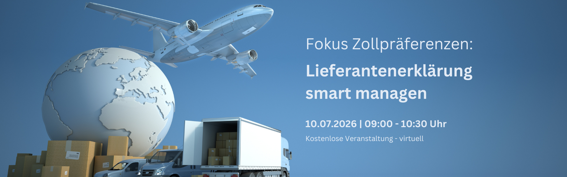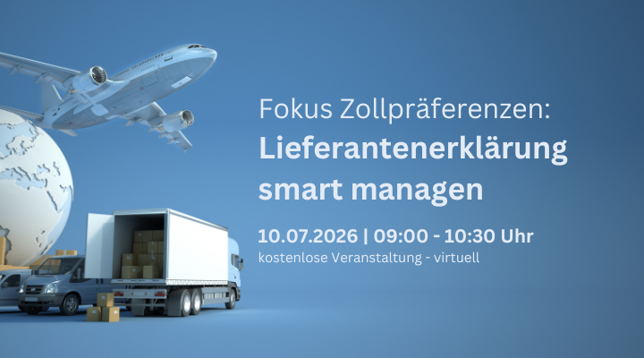 Das Webinar richtet sich an Mitarbeiter, die verantwortlich für das Handling und Management der Lieferantenerklärungen im Unternehmen sind. Wir laden Sie herzlich dazu ein, Ihre Fragen aus der Praxis mitzubringen oder Beispiele, die sich nicht eindeutig darstellen.