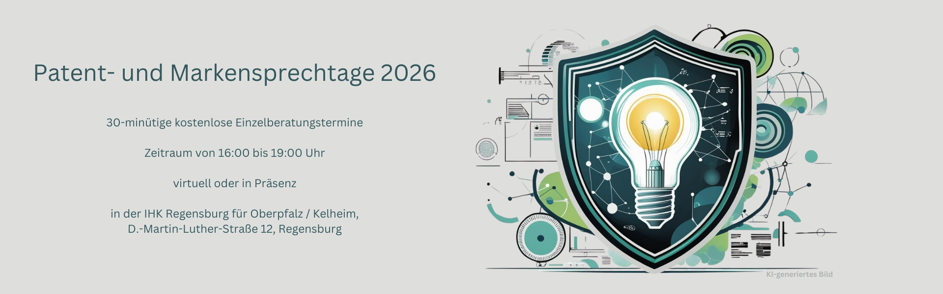 Sie haben privat oder im Beruf etwas erfunden, möchten eine Marke anmelden oder Ihr besonderes Produktdesign schützen lassen und wissen nicht wie? Unser Patent- und Markensprechtag hilft Ihnen bei der Beantwortung Ihrer Fragen.
