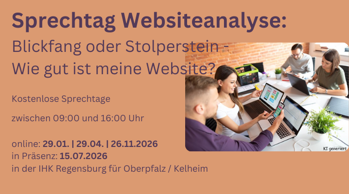 Wie gut ist Ihre Website wirklich? In unserer kostenfreien Einzelsprechstunde nehmen wir Ihre Seite genau unter die Lupe – mit den Schwerpunkten: