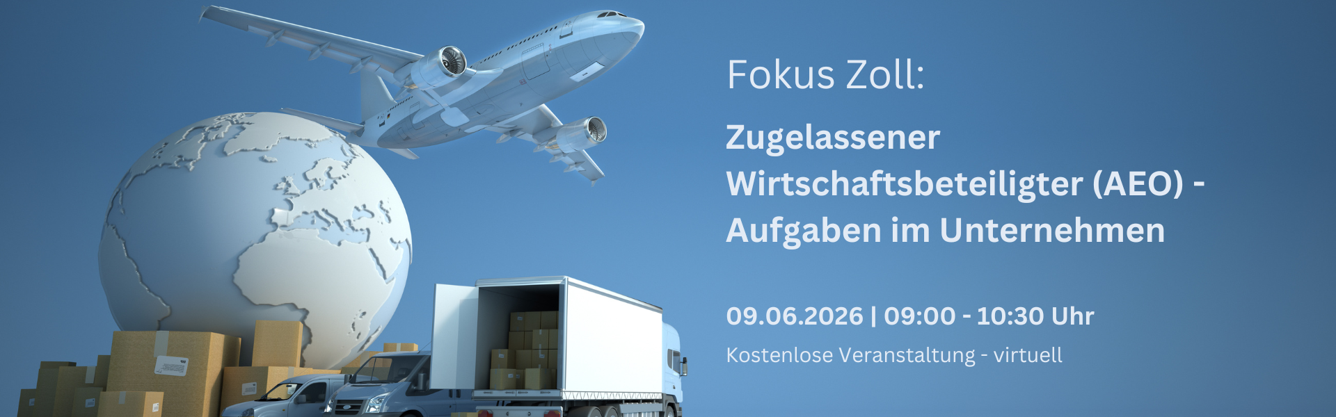 In unserem Info-Webinar erhalten Sie ein klares Verständnis davon, was der AEO ist, welche Ziele er verfolgt und warum er für Unternehmen von Bedeutung ist. Es bietet die ideale Grundlage für alle, die sich erstmals mit dem Thema AEO auseinandersetzen möchten – praxisnah, verständlich und einsteigerfreundlich.